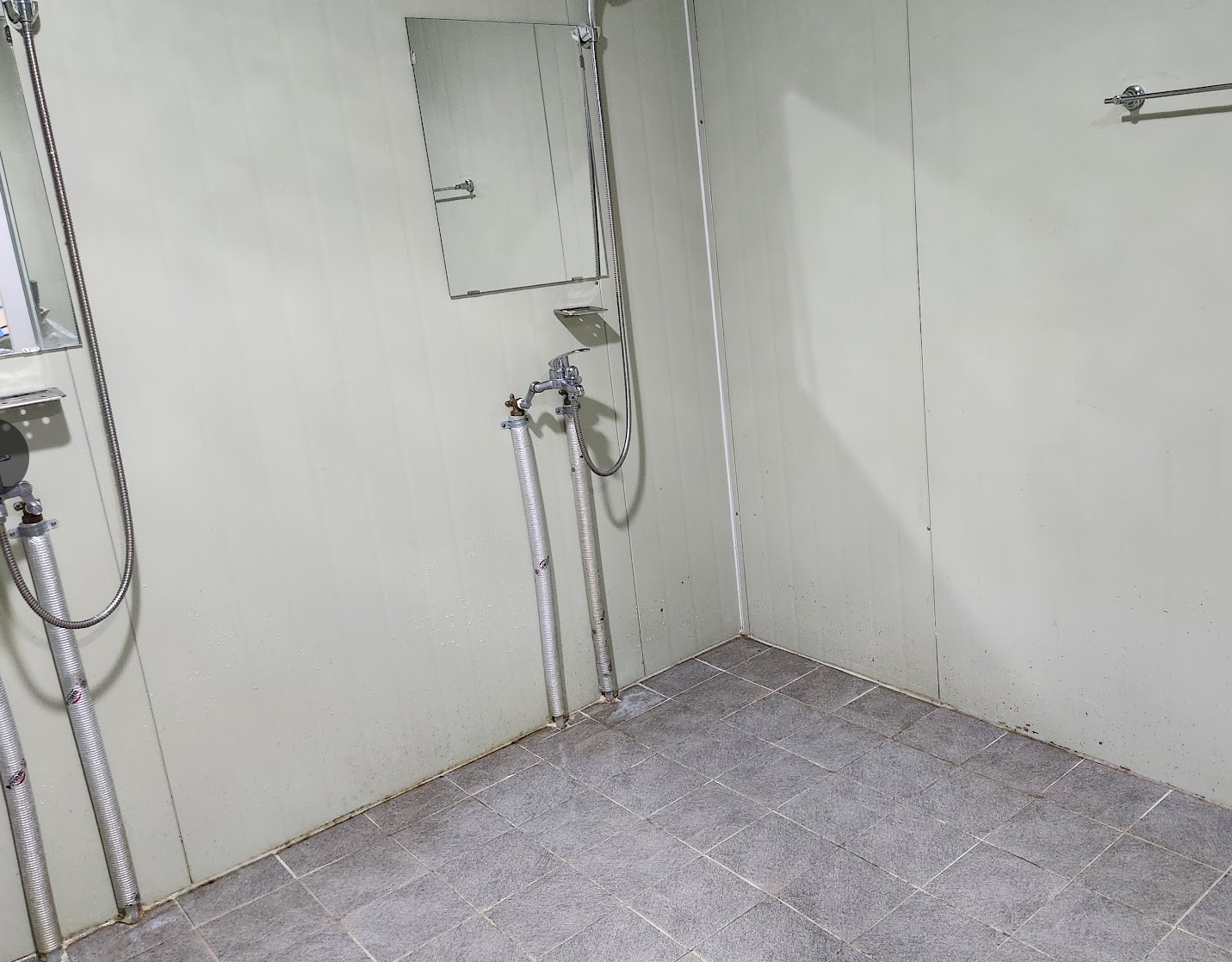 호스를 제공해 주시지 않아서 제가 사 두었습니다. 이렇게 물청소를 할 수 있어서 다행입니다. 어느 날은 노동자분들이 장화에 묻은 흙을 씻어낸다고 호스를 잘라서 사용했습니다. 잘라지고 남은 호스가 화장실 끝 쪽에 닿지 않아 물을 보내기 힘들어 애를 먹었답니다.^^ 할 수 없이 다시 긴 호스를 사놓았습니다.